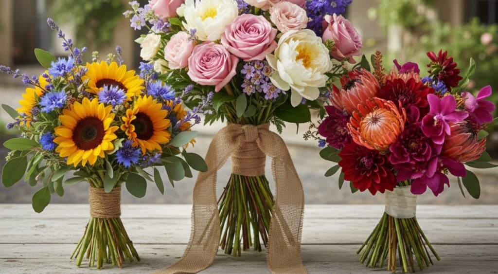 Seasonal flowers—like gladiolus, chrysanthemums, gerberas, and local lilies—naturally cost less and look fuller than rose-only bouquets.