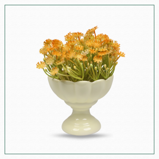 This piece adds a touch of freshness and warmth to any space.the clean,minimalist design of white vase contrasts beautifully with bright cheerfull bloom.