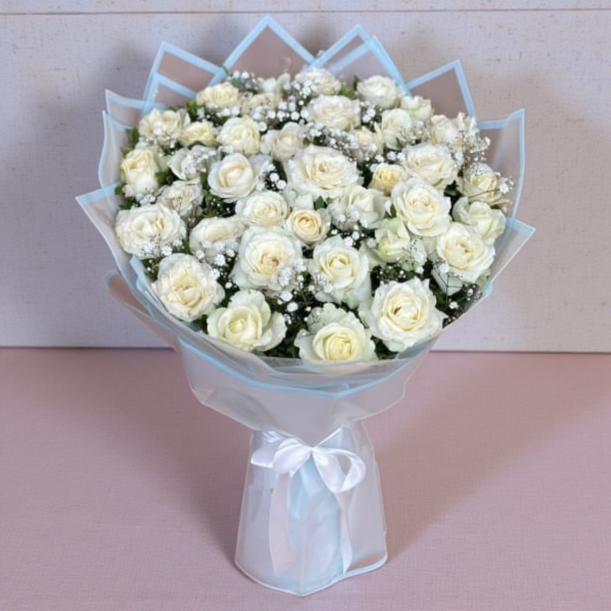 Flower: 70 Local White Roses,3 Baby Breath