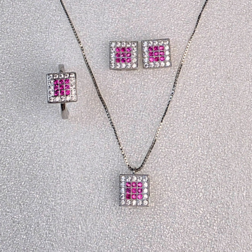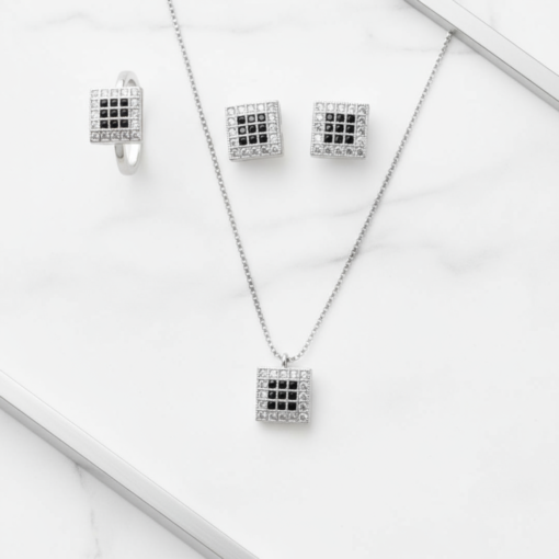 Radiate charm and elegance with this exquisite jewelry set, featuring a stunning necklace, matching earrings, and a beautifully crafted ring. Designed to captivate, each piece sparkles with delicate crystals that catch the light from every angle, adding a soft, feminine glow to your look.