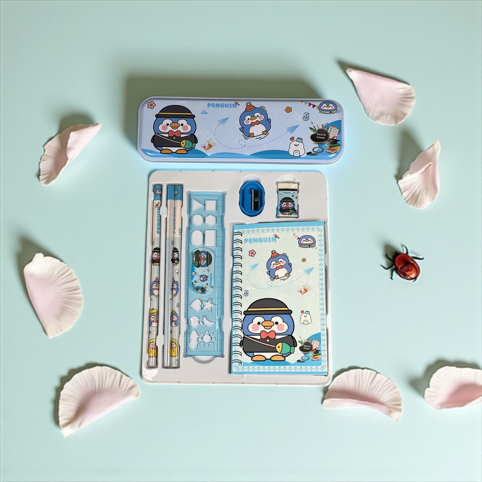 Penguin Design Stationery Set – 8 PCs of Cute School Essentials!