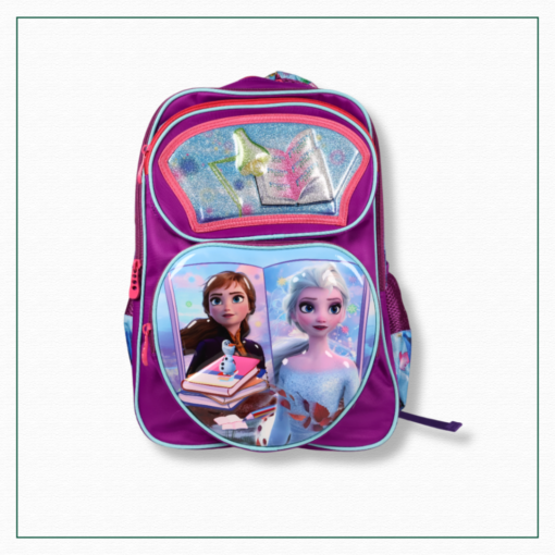 Let the magic of Arendelle follow her to school! The Frozen 17″ school bag features beautifull prints of Elsa and Anna perfect for young fans of the magical kingdom. With spacious compartments, comfy padded straps and a durable design it’s made to carry books, supplies and dreams with ease. A sparkling choice for school days full of adventure!